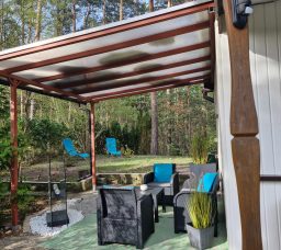 Das Waldhaus liegt am Waldrand (ein Eckgrundstück) und gleichzeitig in einer Wochenendsiedlung.